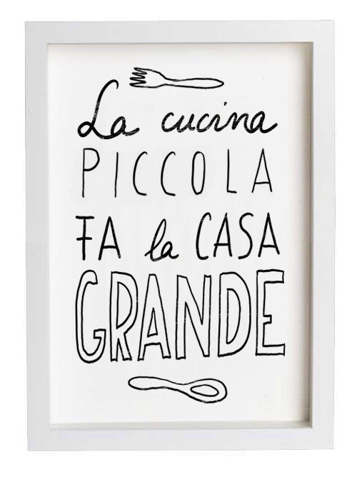 Translation (from Italian): A little kitchen makes a large home, $30, Anek