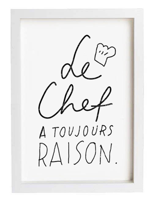 Translation (from French): The chef is always right, $45, Anek