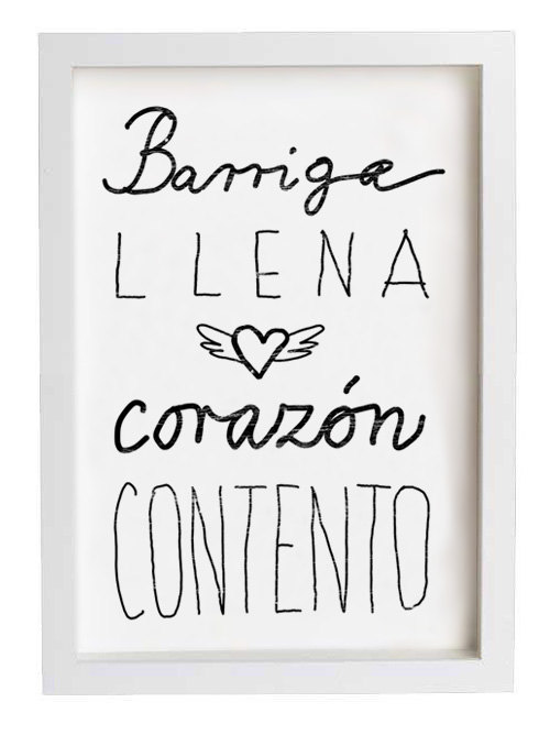 Translation (from Spanish): A full stomach makes a happy heart, $45, Anek