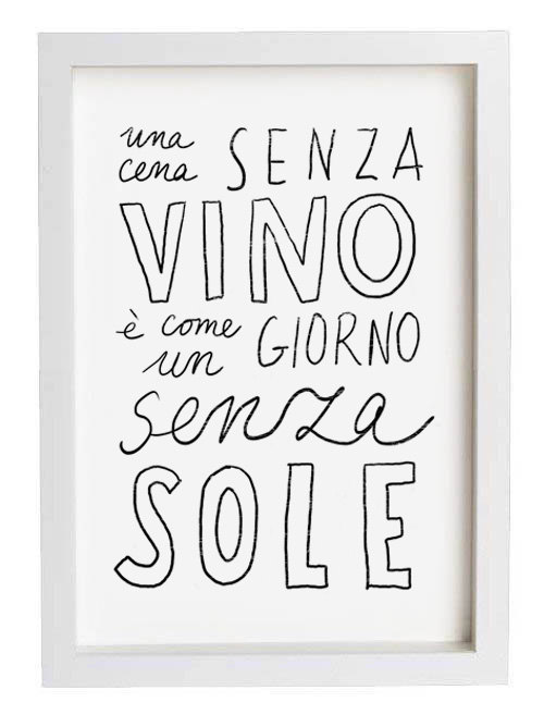 Translation (from Italian): A dinner without wine is like a day without sunshine, $45, Anek